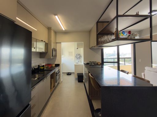Fogão cooktop, coifa, microondas, ralo triturador de alimentos, liquidificador, air fryer, aspirador robô, forno elétrico embutido, geladeira duplex, 2 TVs, 1 tela de monitor widescreen