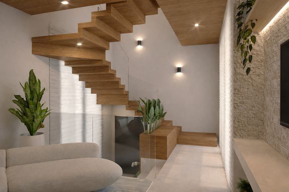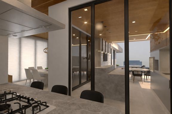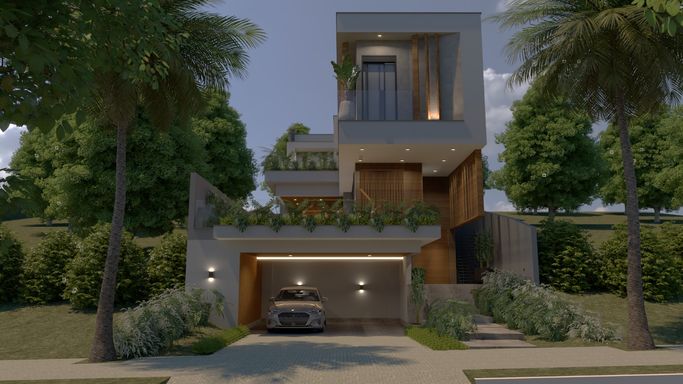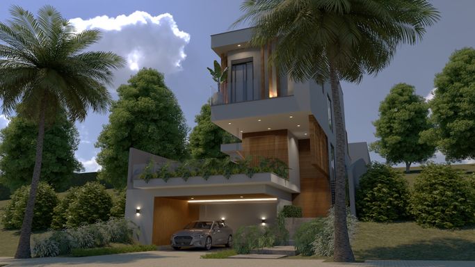 Terreno em aclive, o que proporciona um projeto audacioso dividido em 3 pavimentos